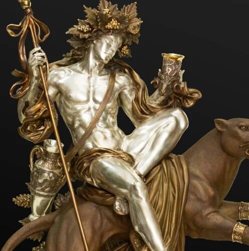 W mitologii greckiej bóg płodności, dzikiej natury, winnej latorośli i wina, reprezentujący jego upajający i dobroczynny wpływ.