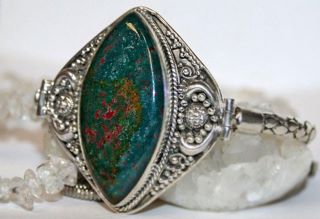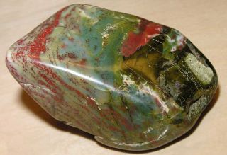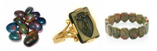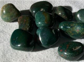 Bloodstone to ciemnozielona odmiana chalcedonu z wtrąceniami tlenku żelaza, który wytwarza czerwone lub brązowawe plamy w kamieniu, a czasem można znaleźć białe lub żółtawe plamy.