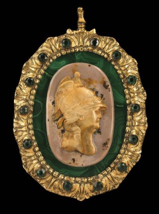 Classic cameo Catherine II as Minerva, Roman goddess of wisdom and war, in an 18th century cameo.
