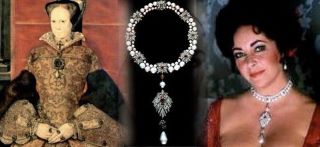 Mary Tudor, królowa Anglii z perłą Pielgrzyma i Liz Taylor