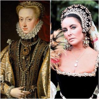 Ana de Austria y Liz Taylor usando la Perla Peregrina