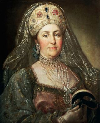 Fragment obrazu Christiny Robertson „Tatjana Wasiliewna Jusupowa (1769–1841)”. Księżniczka nosiła perłę jako kolczyk.