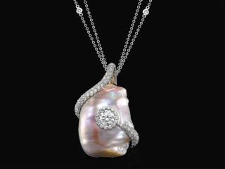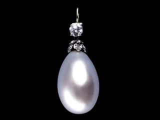 Perła w kształcie gruszki o masie 133,16 granów została wkomponowana w Perłowo-Diamentowy wisiorek, z diamentową nakładką o szlifie rozetowym i diamentową zwieńczeniem o szlifie okrągłym.