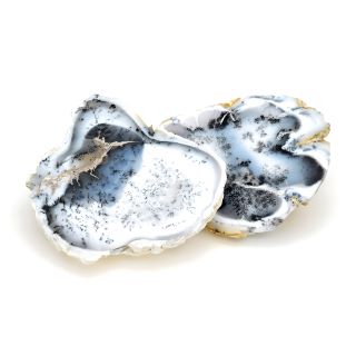 Podczas gdy większość Agate Dendritic ma mleczny odcień ciała, mogą one również wydawać się przezroczyste lub nieprzezroczyste.