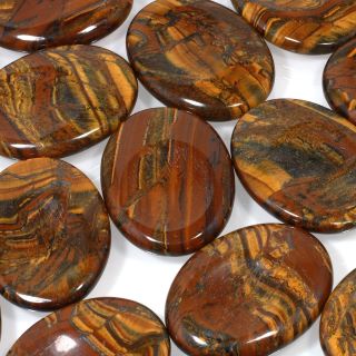 Błyszczące kamienie Jasper Tiger zawierają warstwy lśniącego złotego Tiger Eye, metalicznego szarego Hematytu i głębokiego Red Jasper.