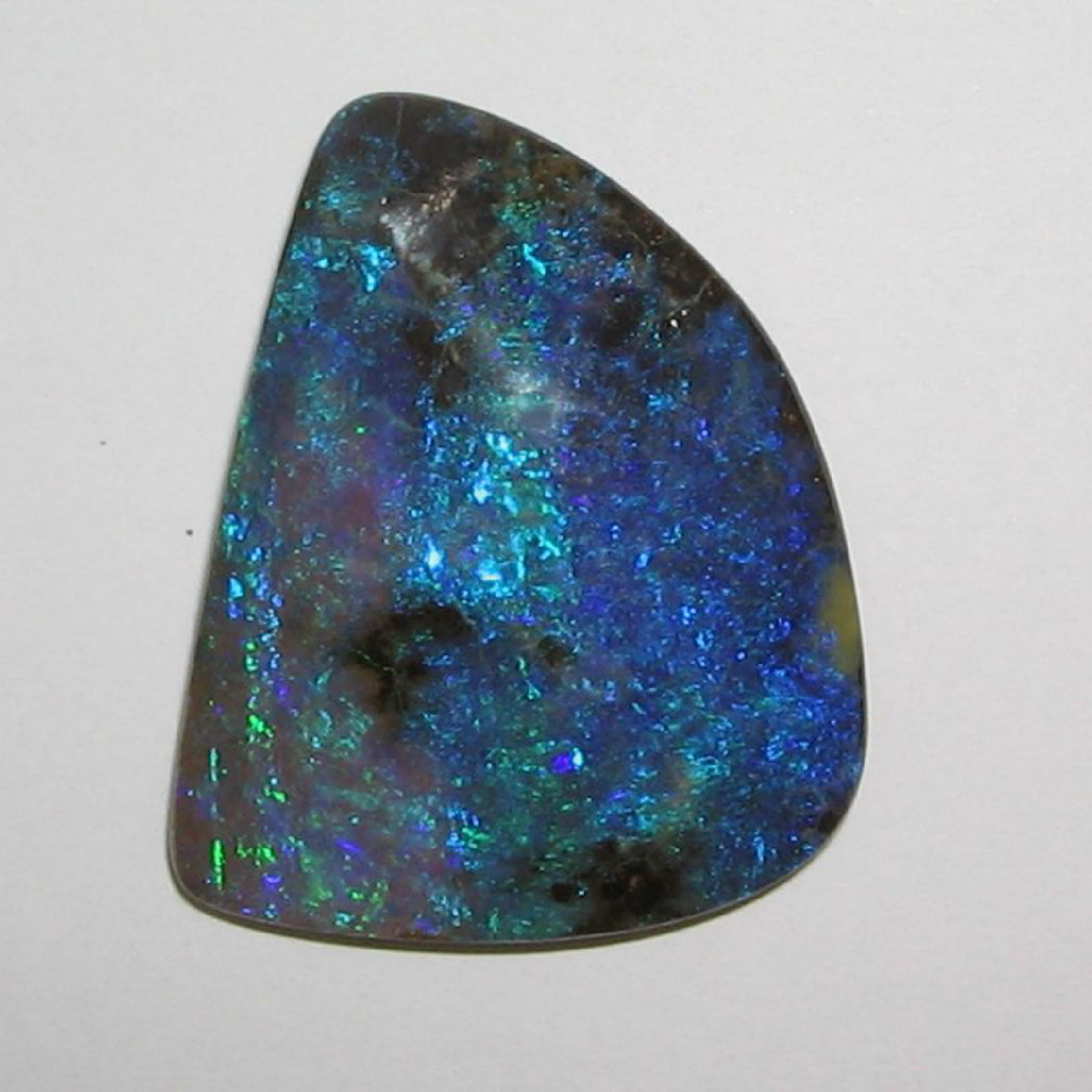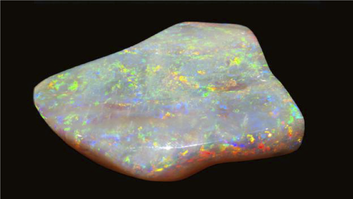 Na powierzchni Opalu znajdują się różnorodne wielobarwne plamy i przebłyski.