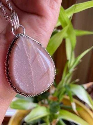 Wisiorek w kształcie łezki z Różowego Kamienia Księżycowego z dużym, brzoskwiniowo-białym kamieniem szlachetnym oprawionym w srebro próby 925.