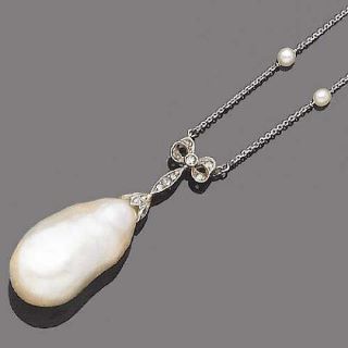 Pearl Belle Époque Diamond and Baroque Pearl Pendant Necklace