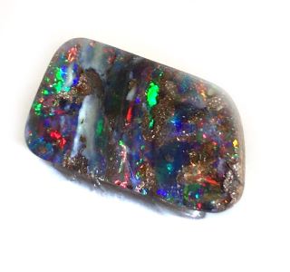 Boulder Opal to uderzająca odmiana Opalu, w której cenny Opal tworzy się wewnątrz Skały Żelazistej lub Piaskowca lub pozostaje z nią połączony.