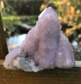 Kwarc Lavender Spirit to mniej powszechna odmiana, której centralny kryształ ma bladofioletowy lub lawendowy odcień.