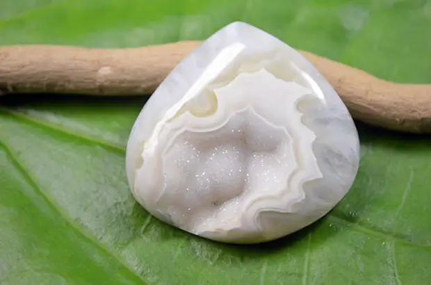 Najbardziej uderzającą cechą Białego Agatu jest jego gładka, pasiasta lub warstwowa struktura.