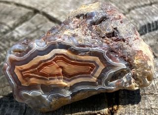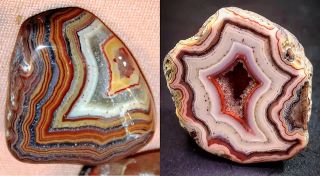 Agat Fairburn Shadow to urzekająca odmiana, znana z głębokich, ciemnych pasów, ostro kontrastujących z jaśniejszymi warstwami.