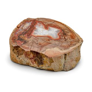 Ta odmiana Surowego Agatu Fairburn w urzekający sposób ukazuje geologiczną historię kamienia
