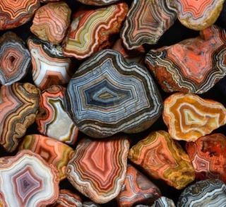 Surowy Agat Fairburn występuje w kilku urzekających odmianach o unikalnych wzorach i kombinacjach kolorów.