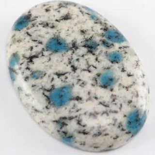 Z kropkami i płytkami czarnych inkluzji na białym, kremowym lub szarym podłożu, Czarny Kamień K2 może mieć plamy niebieskiego i żółtego, a nie plamy czy kule. Doskonale nadaje się do ochrony psychicznej i uziemienia.