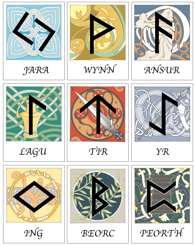 Zamieszczam te ilustracje symboli runicznych, bo bardziej odpowiadają mi w tej formie niż obrazkowej