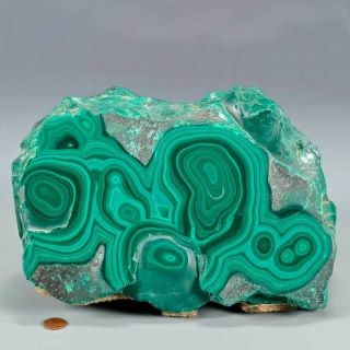 Malachit afrykański ma bardziej „prymitywny” wzór idealnie gładkich pierścieni.