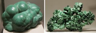 Formacje nerkowate (sferolityczne) (po lewej) i formacje promienisto-promieniste. Po lewej – Ural, po prawej – Kongo.