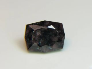 Niektóre lśniące drobinki w tym krysztale pochodzą z miki, stąd nazwa „Błyszczący Nuummite”.