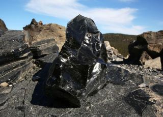 Nawet nieoszlifowany Obsidian ma piękny czarny blask.