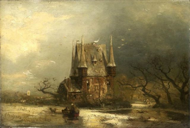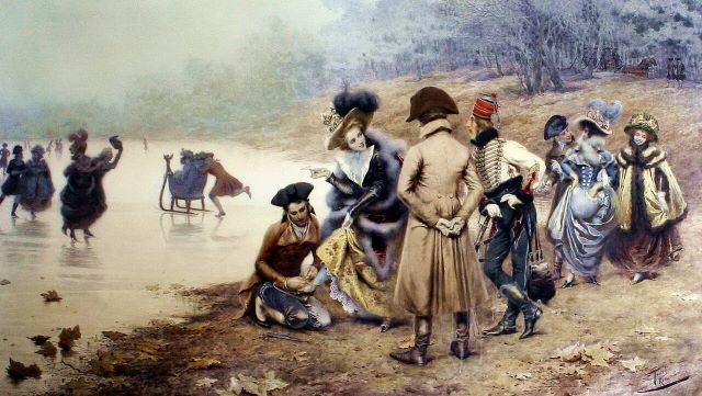 River landscape with skaters - Flusslandschaft mit Schlittschuhlaufern