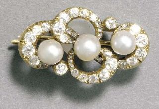 Antyczna rosyjska broszka z naturalnych Pereł i Diamentów